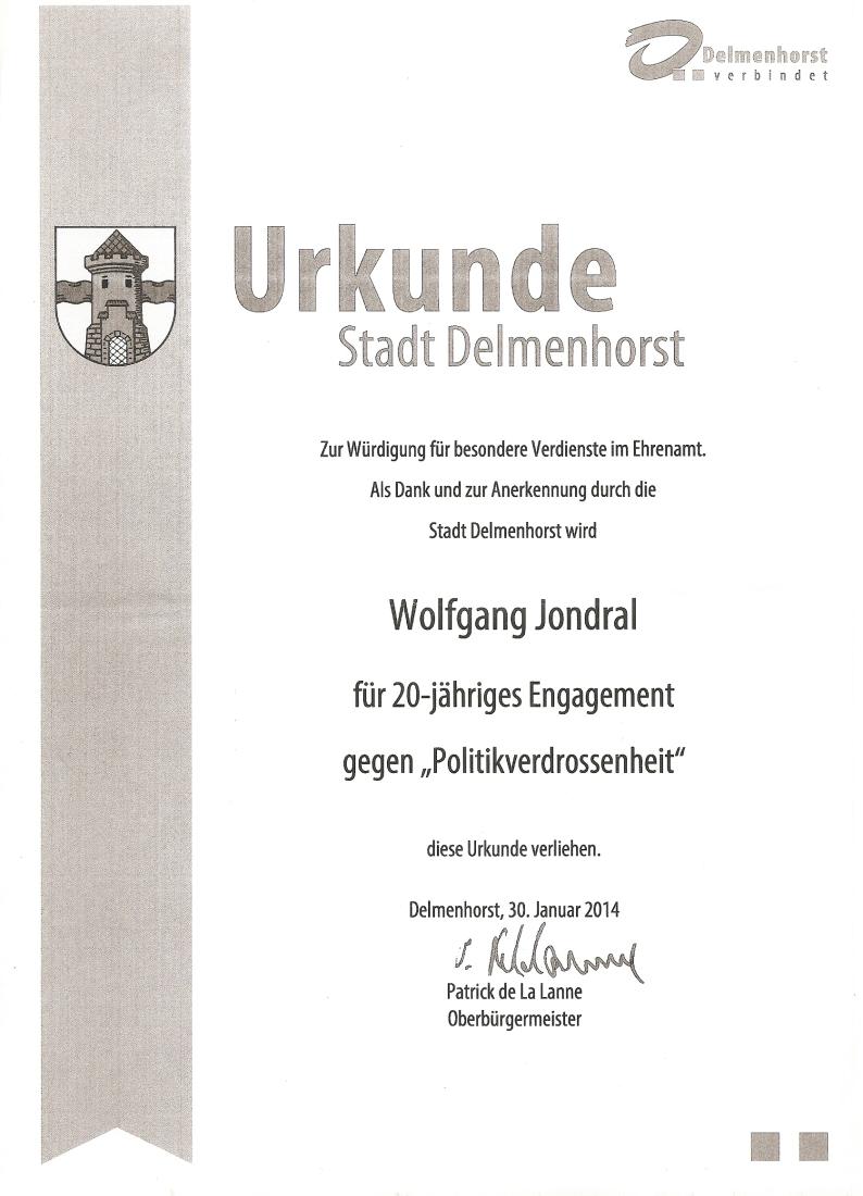 Tradition ist mit der Geschichte untrennbar verbunden. Sie braucht u.a. Symbole, Zeichen und auch Figuren. Einer seiner Nachfahren wurde der am 29.08.1937 in Bütow/Pommern geborene Ortwin Zielke, der am 06.10.2000 die Aufgaben dieser Traditionsfigur übernahm, von der er erstmalig 1959 hörte. 2015 feierte er in traditioneller Bekleidung und ausgerüstet mit Horn, Laterne und Hellebarde sein 15-jähriges Nachtwächterjubiläum als Gästeführer und Original in Delmenhorst. |