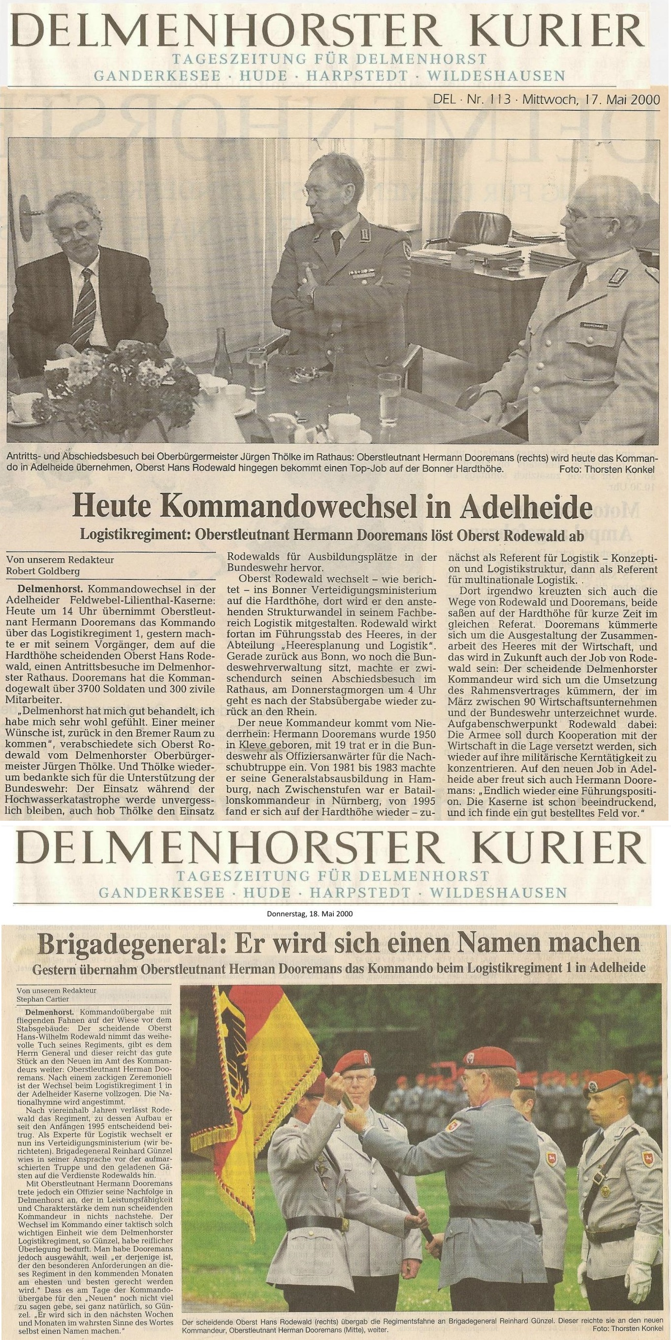 Kommandeurwechsel beim Logistikregiment 1: Oberstleutnant Hermann Dooremans folgt Oberst Hans Wilm Rodewald. (Weser Kurier, Delmenh. Kreisblatt, A-Eins). |