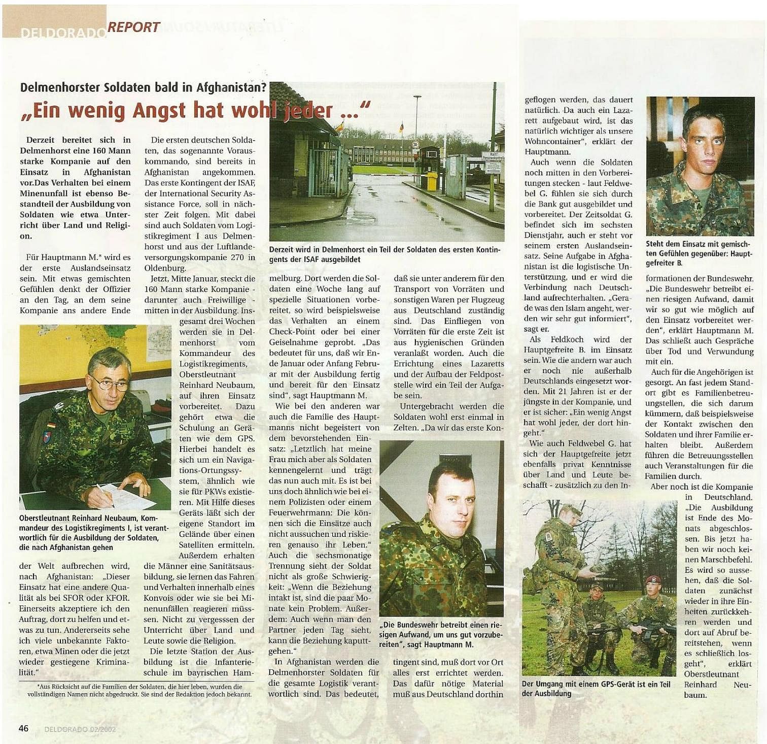 364 Soldaten des Logistikregiments 1 kehren nach 6-monatigem Auslandseinsatz vom Balkan zurück.Das Delmenhorster Kreisblatt berichtet über die Erleichterterung bei den Familien.