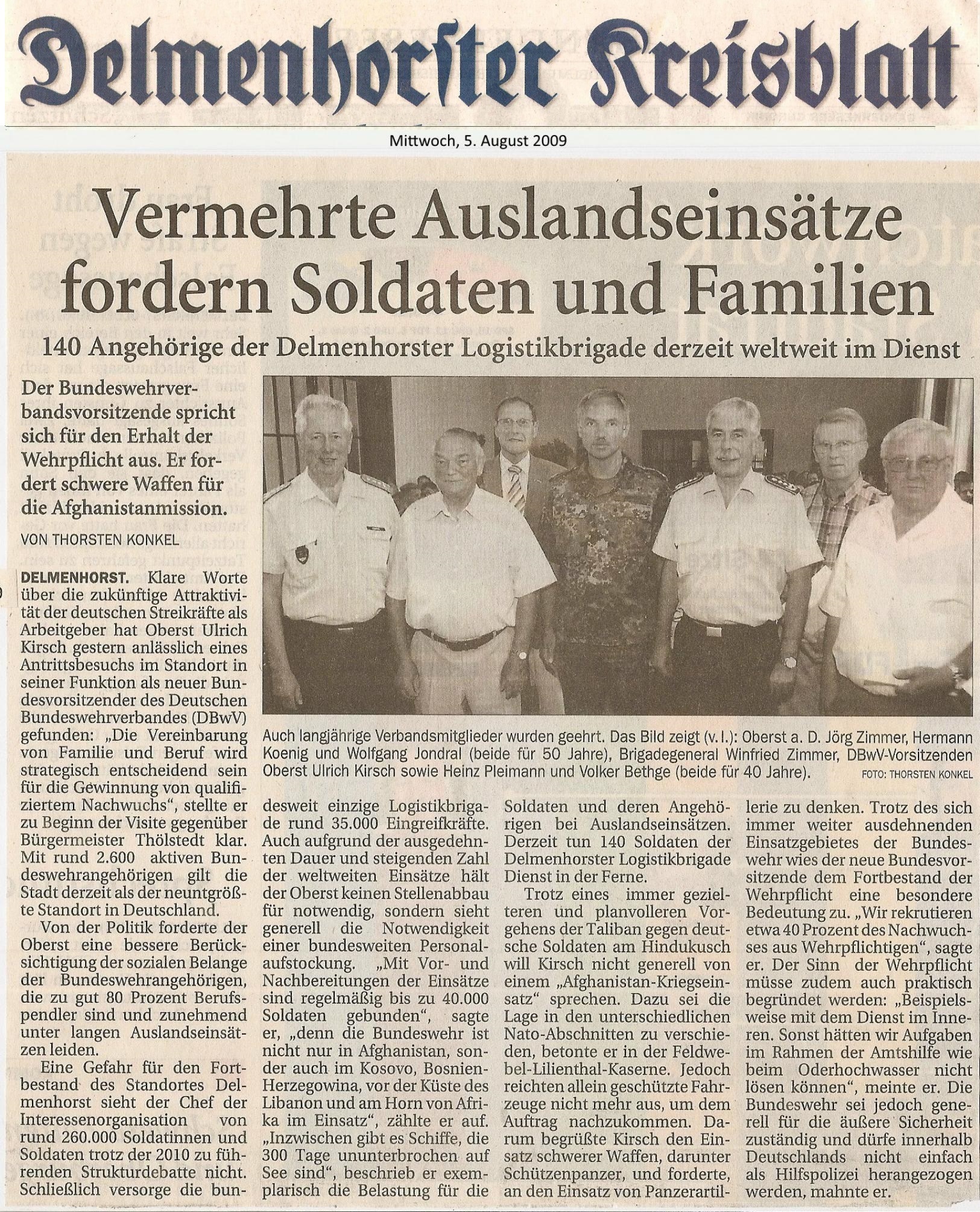 Mit einem Antrittsbesuch stellt sich der neue Vorsitzende des Deutschen Bundeswehr-Verbandes, Oberst Ulrich Kirsch, vor. Dabei erhält er auch einen Überblick über die Stimmung der Soldatinnen und Soldaten am Standort Delmenhorst. (Delmenh. Kreisblatt) |
