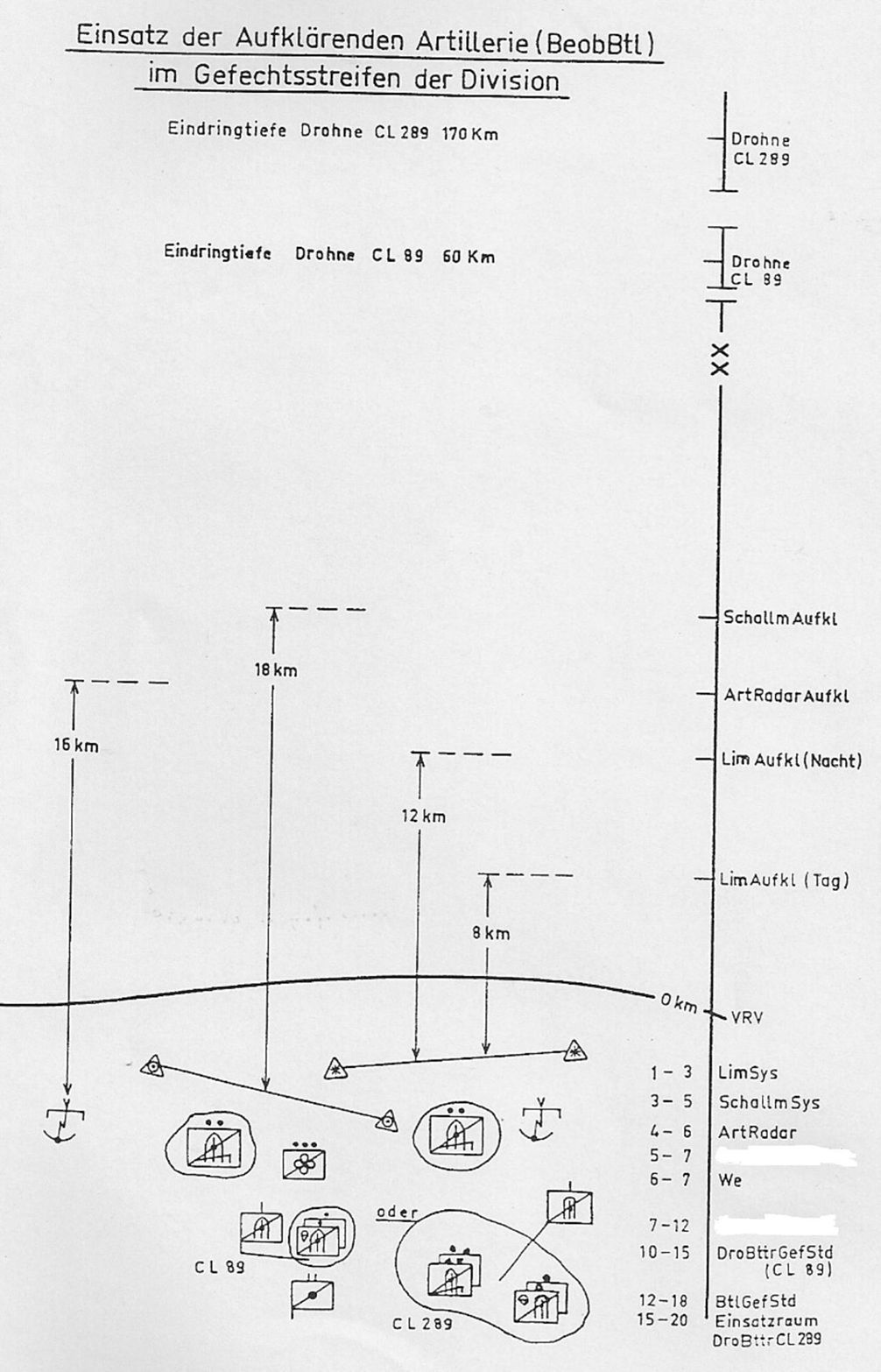 Einschub: Im Zusammenhang mit der Drohnerei meldet sich im Sommer 1987 ein Entwicklungsingenieur eines Bremer Großkonzern beim Bataillon und bittet um Unterstützung: man wolle ein unterwegs steuerbares fliegendes Aufklärungssystem als Ergänzung zur bestehenden Planung / Ausrüstung entwickeln und benötige erst mal eine genauere Idee von dem, was das Bataillon eigentlich so leistet und leisten könnte und sich als Verbesserungen vorstellt. Der Mann kann kommen, übt als (vorläufiger) Hauptmann vier Wochen und geht mit den Spezialisten (siehe unten) in die Details. Und tatsächlich kommt 2004 das Fluggerät, zunächst gemeinsam mit den Franzosen entwickelt, als KZO heraus, wird erfolgreich auf dem Balkan und in Afghanistan eingesetzt und ersetzt wenigstens teilweise die (dann ausgemusterte) Drohne CL 289. Ende des Einschubs.
